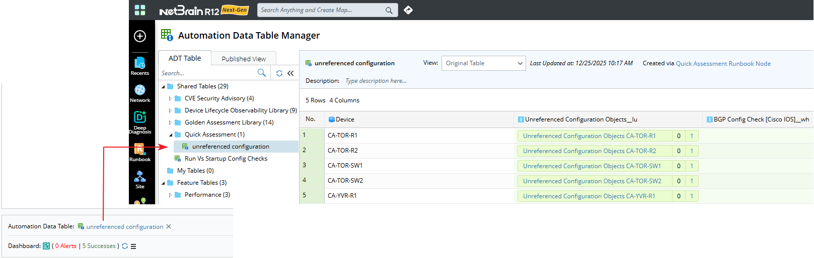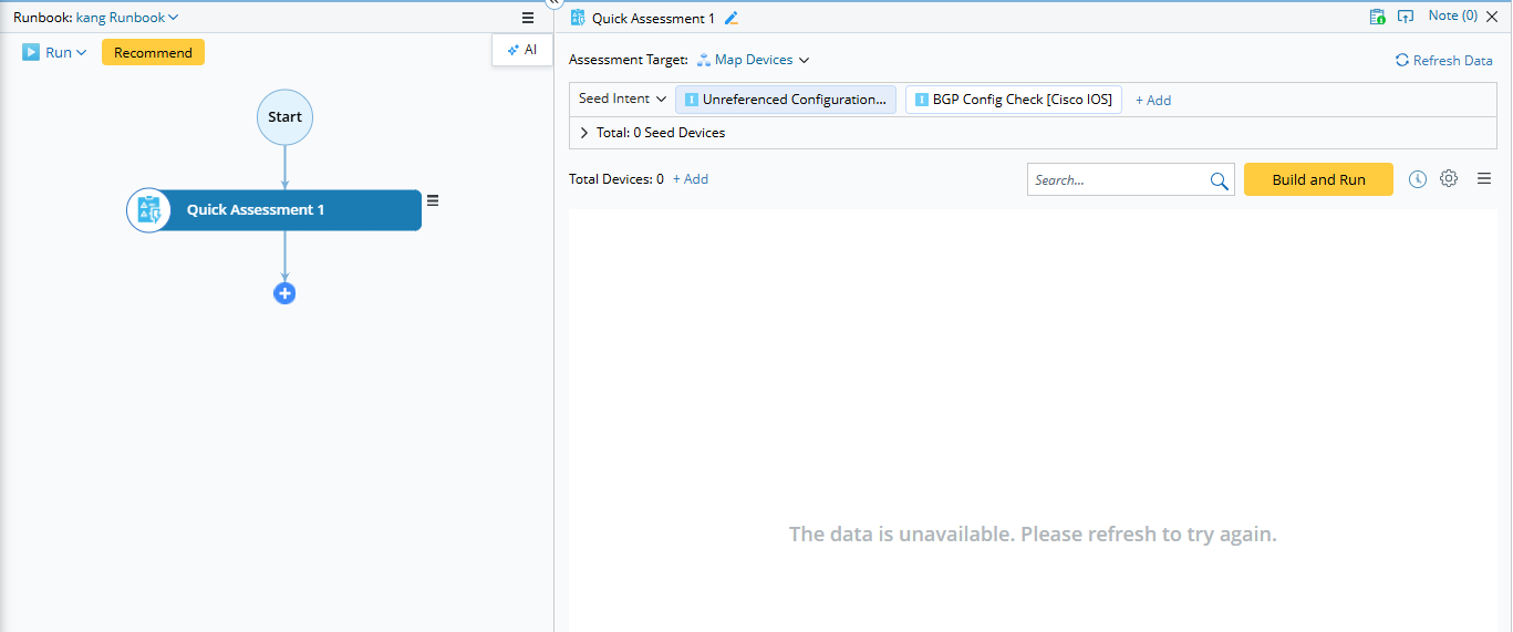 If the ADT created by the Quick Assessment node is deleted, the following behavior occurs when reopening the node: