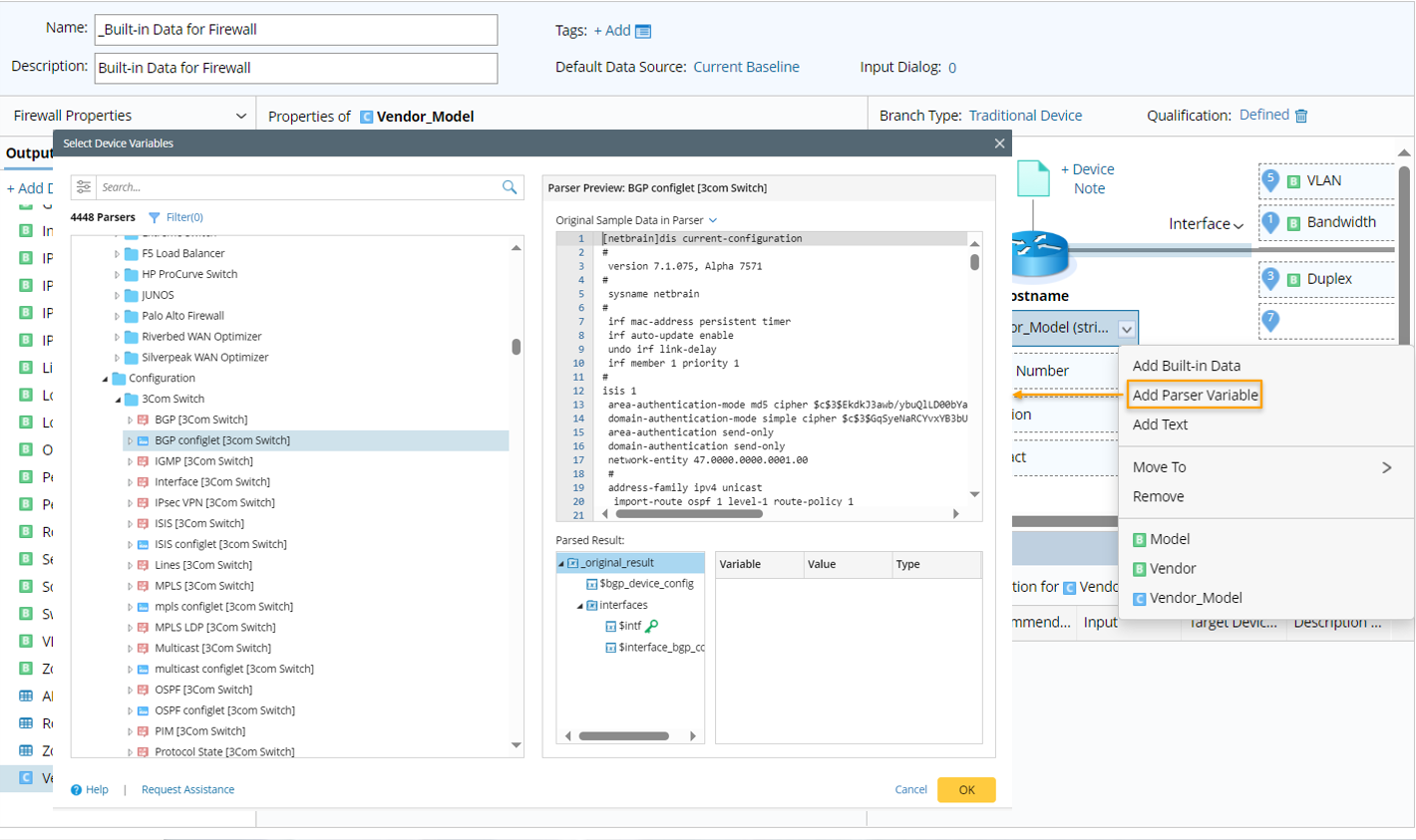 Parser Discovery Window appears only when you need to select or load a Parser in NetBrain Automation functions: