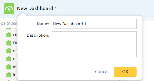 and select New Universal Dashboard. - On the new dashboard page, hover over the dashboard name and description, click