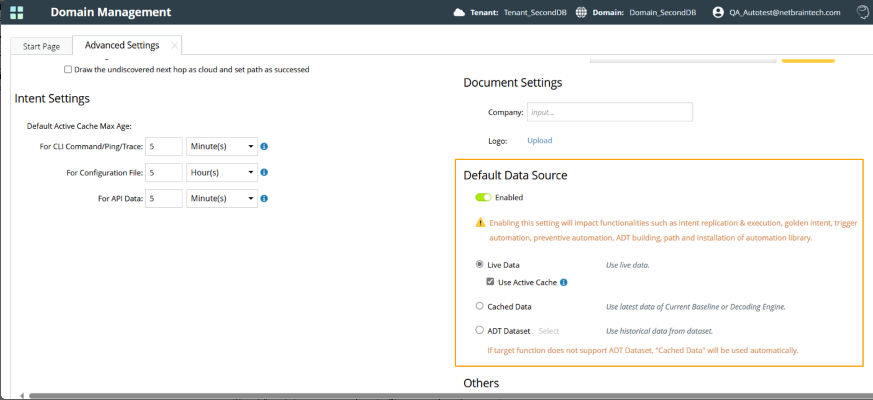 The Default Data Source for Automation is configured in Domain Management (Advanced Settings). For more information, see Default Data Source Settings.