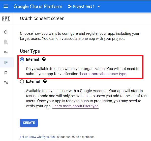 To set up OAuth Consent Screen for each project, refer to the GCP documentation: https://support.google.com/cloud/answer/10311615?hl=en#.