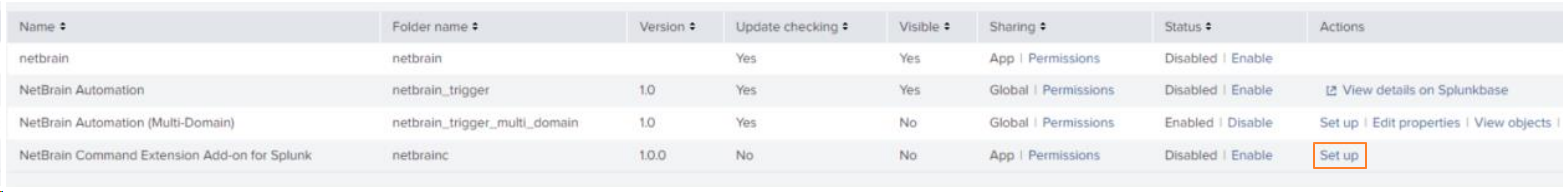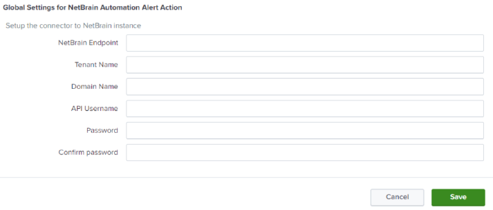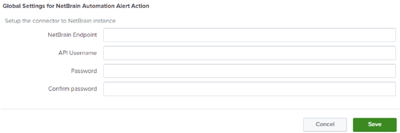 Once the Splunk has been installed, you need to set up it. The authentication information and NetBrain URL to the application need to be provided.
