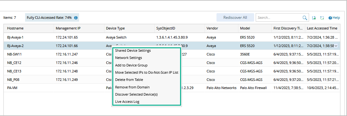 After the IP addresses are discovered successfully, they will be moved to the Fully Accessed via CLI list.