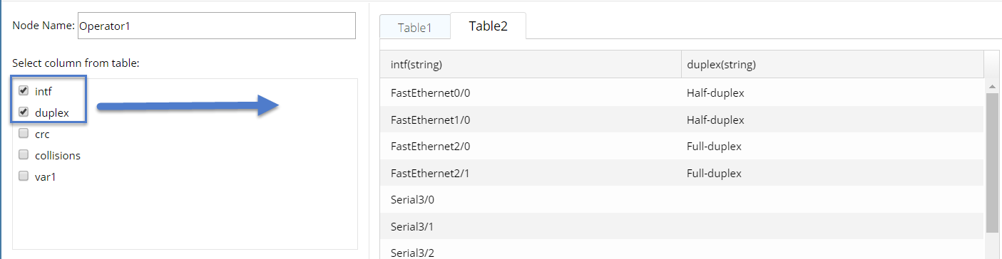 The Neighbor Join operator is used to join the variables of a device and those of its neighbor devices to a new table based on the Neighbor Pair in the Device Queue. It is only applicable when you select Neighbor Pair as device input in the Device Queue node and extend related neighbor device nodes.