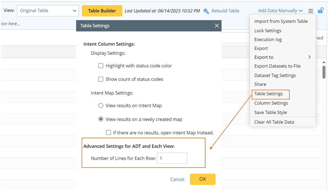 - In the Advanced Settings for ADT and Each View section of the pop-out dialog, input the maximum lines of text displayed.