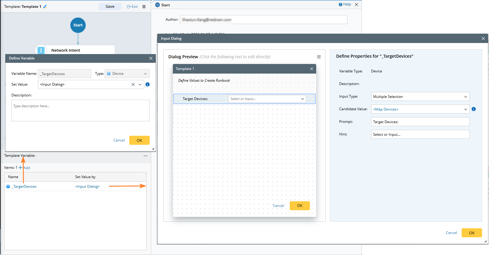 You can configure each template variable in a Runbook Template (RBT) with the following steps: