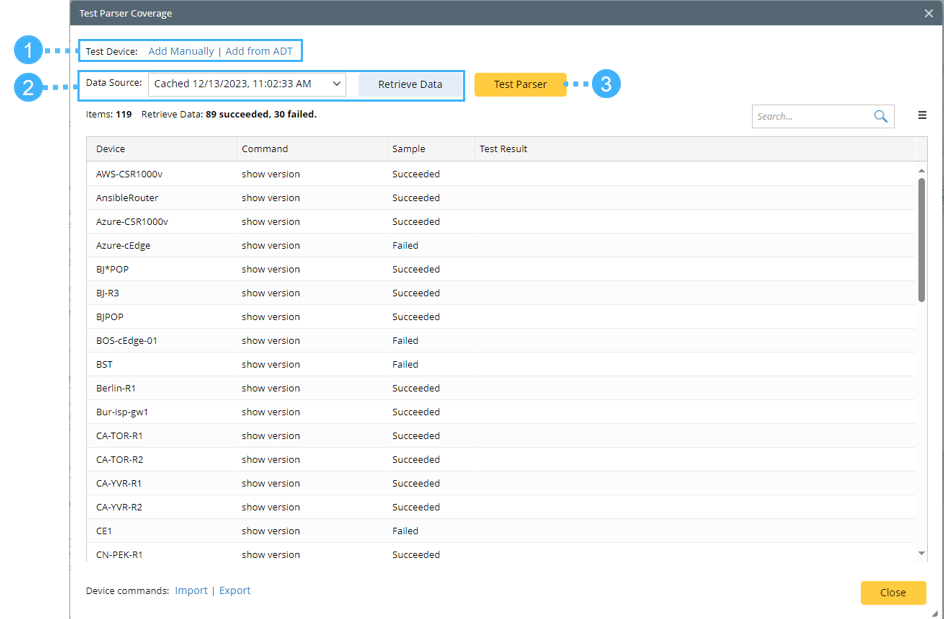 Use the Test Parser feature to verify that the parser functions correctly, not only on the current device but also on other devices, before applying it in automation features such as Intent, Intent Template, Preventive Automation, Runbook CLI nodes, and more. This helps improve the success rate of these automation tasks.