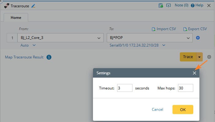 Tip: When selecting a device, its management interface is used as the default traceroute source. You can choose another interface if required. -