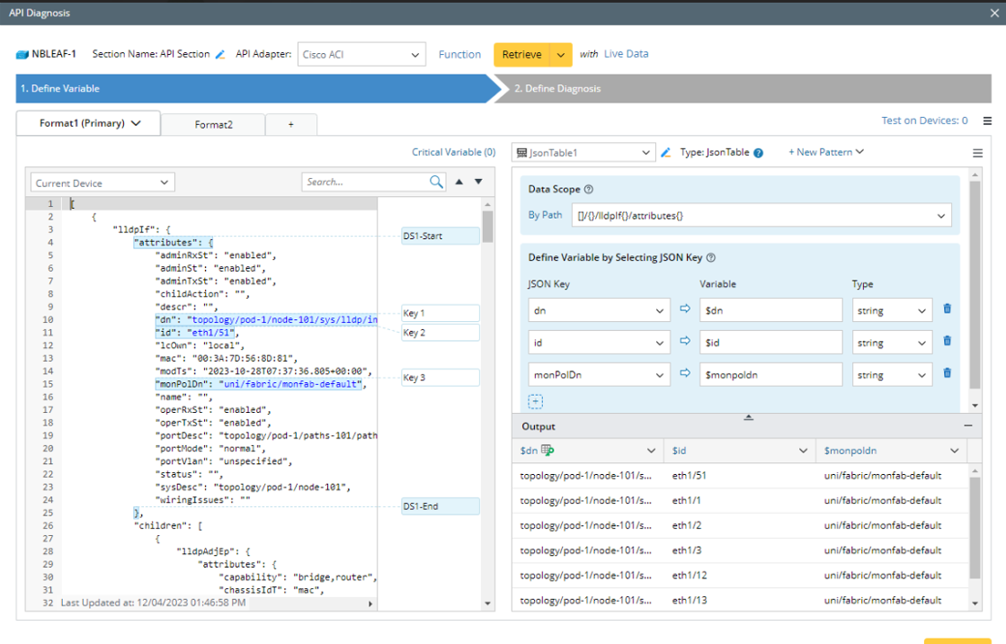 The JSON Table pattern is used to parse JSON-formatted text, such as Cisco ACI and AWS, among others.