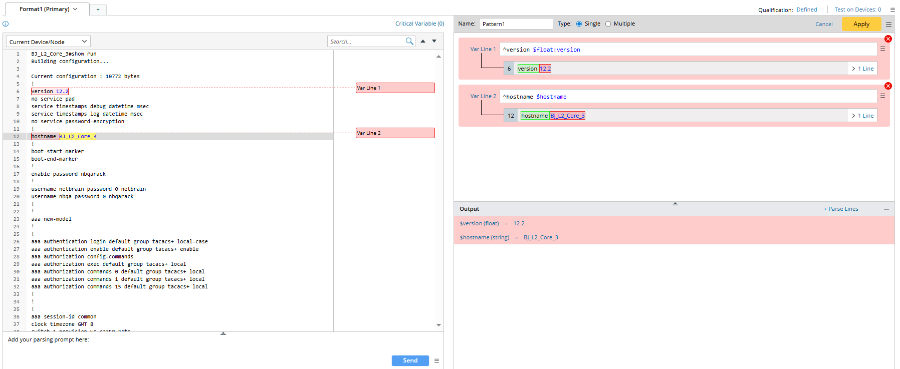 In Auto Parser, the system automatically generates a parser pattern based on the selected words. Support Single or Multiple types and switching between them. For more information, see Auto Parser.