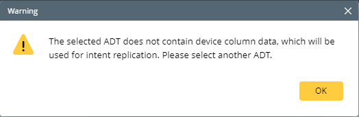 Note: When the seed intent in intended to do device-based replication, it is required to select an existing ADT containing device column or device list column. Otherwise, an alert message will appear.