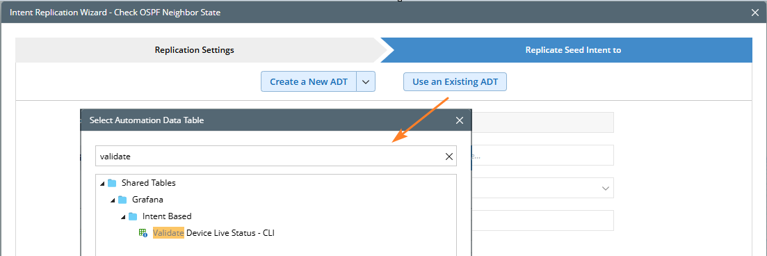 - Create a New ADT: When there is no suitable ADT, you can choose to create one, which will automatically added to the Automation Data Table area. For the steps of creating an ADT in the Intent Replication Wizard, see Create New ADT in Intent Replication Wizard.
