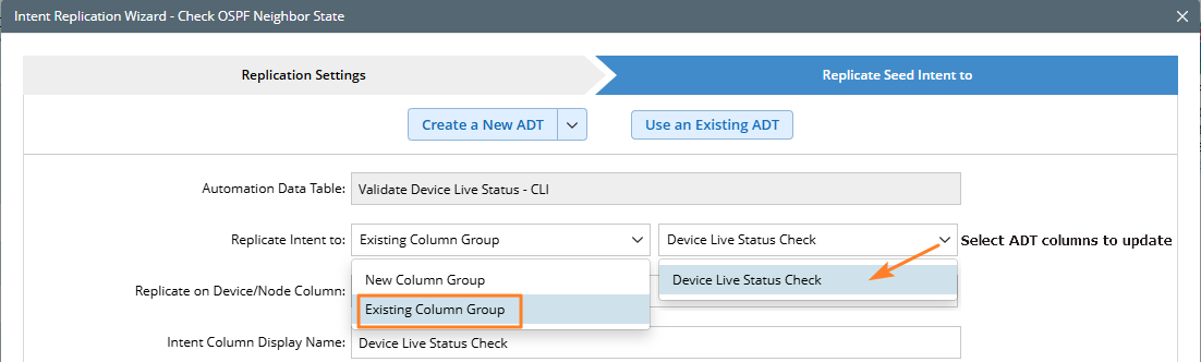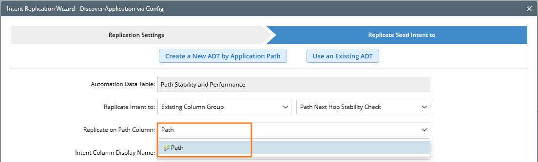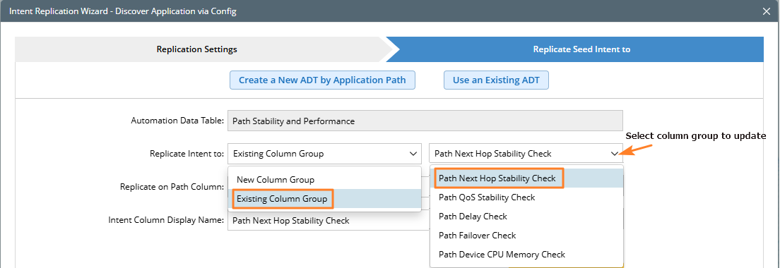 - In the Replicate Intent to area, select Existing Column Group, then select a column group (for example, "Path Next Hop Stability Check").