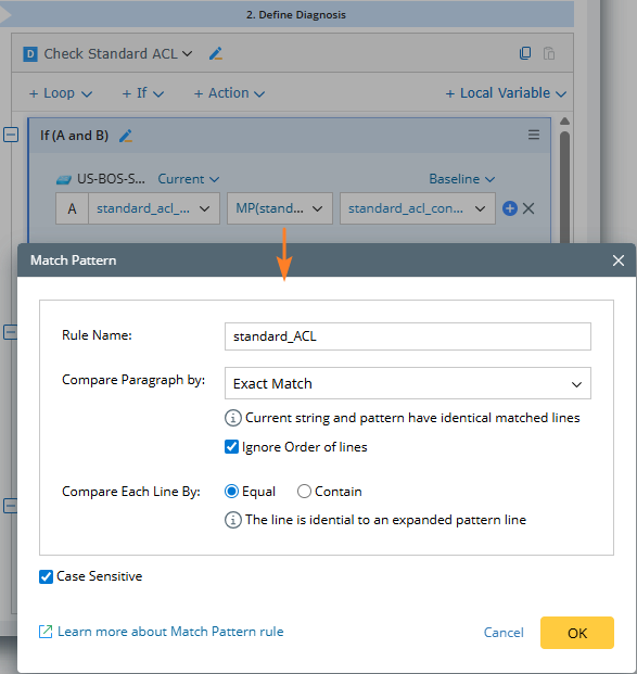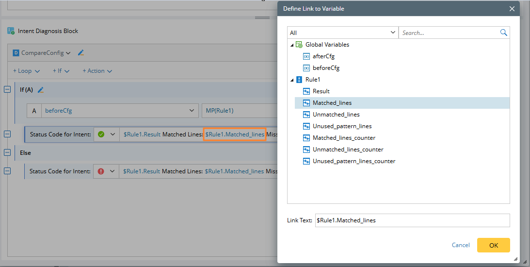 Note: The return values of the match pattern only work in the current diagnosis, and you cannot see the match patterns defined in other diagnoses. |