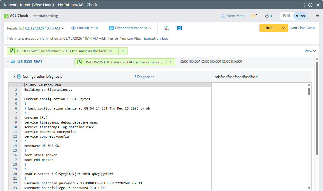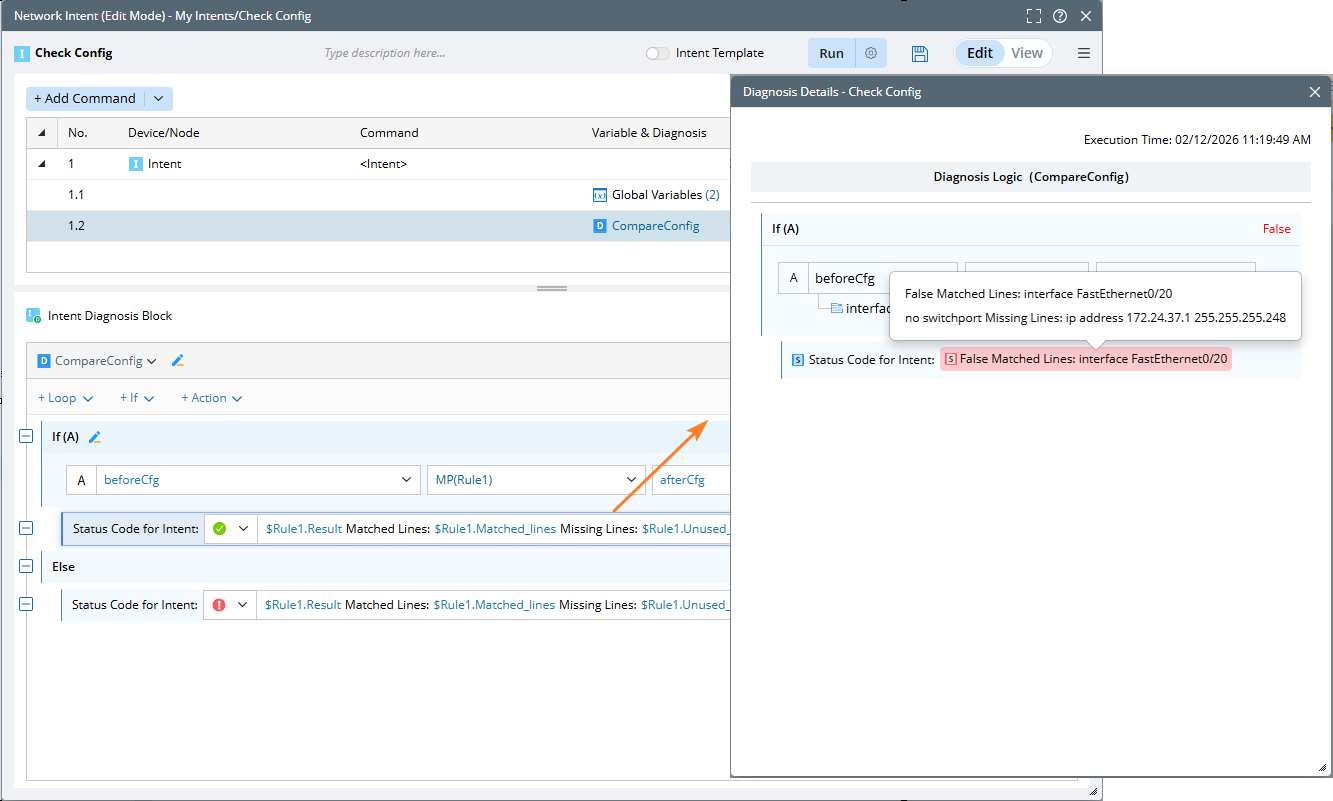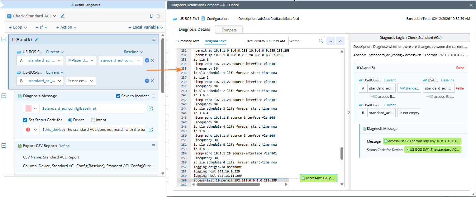 Case 1: Intent Command Diagnosis - You can compare the base ACL and current ACL, and output the corresponding status code.
