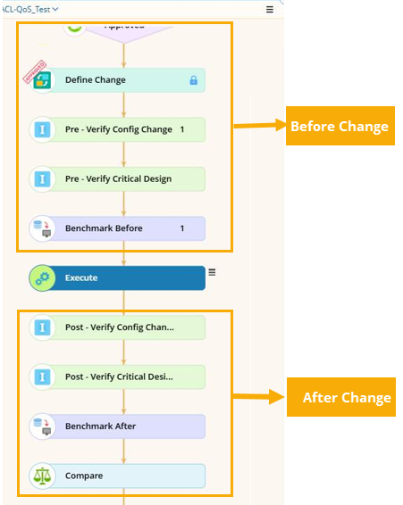 - Execute change: Monitor live network behavior to detect unexpected impacts.