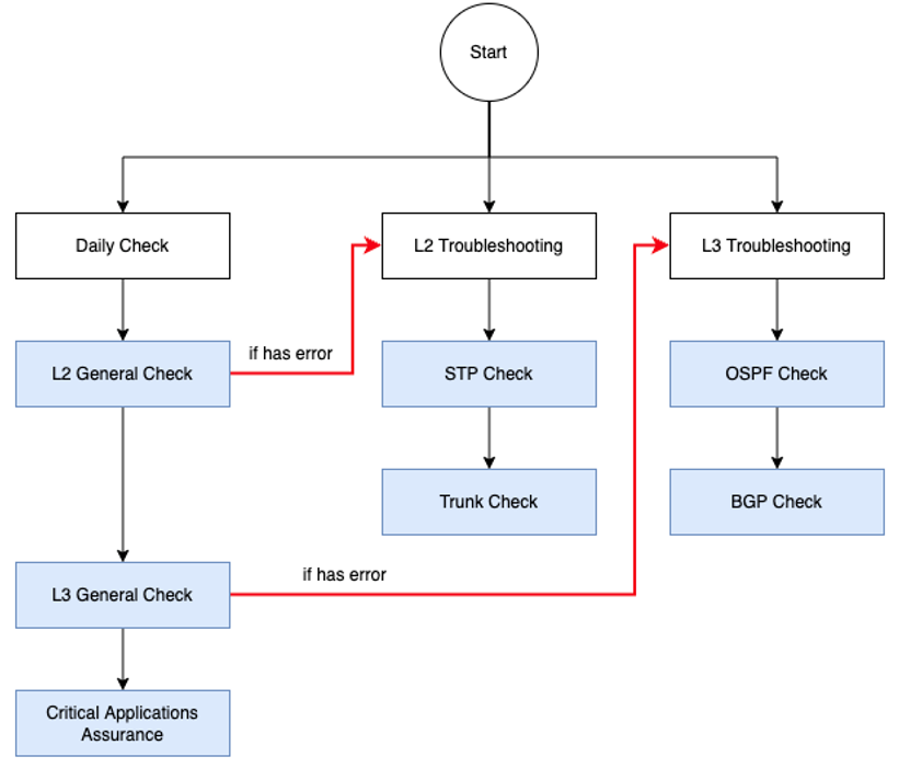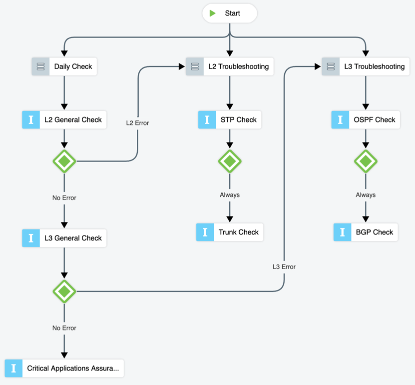 - When errors are detected in L2 General Check intent, we need to do L2 Troubleshooting. To define this flow: