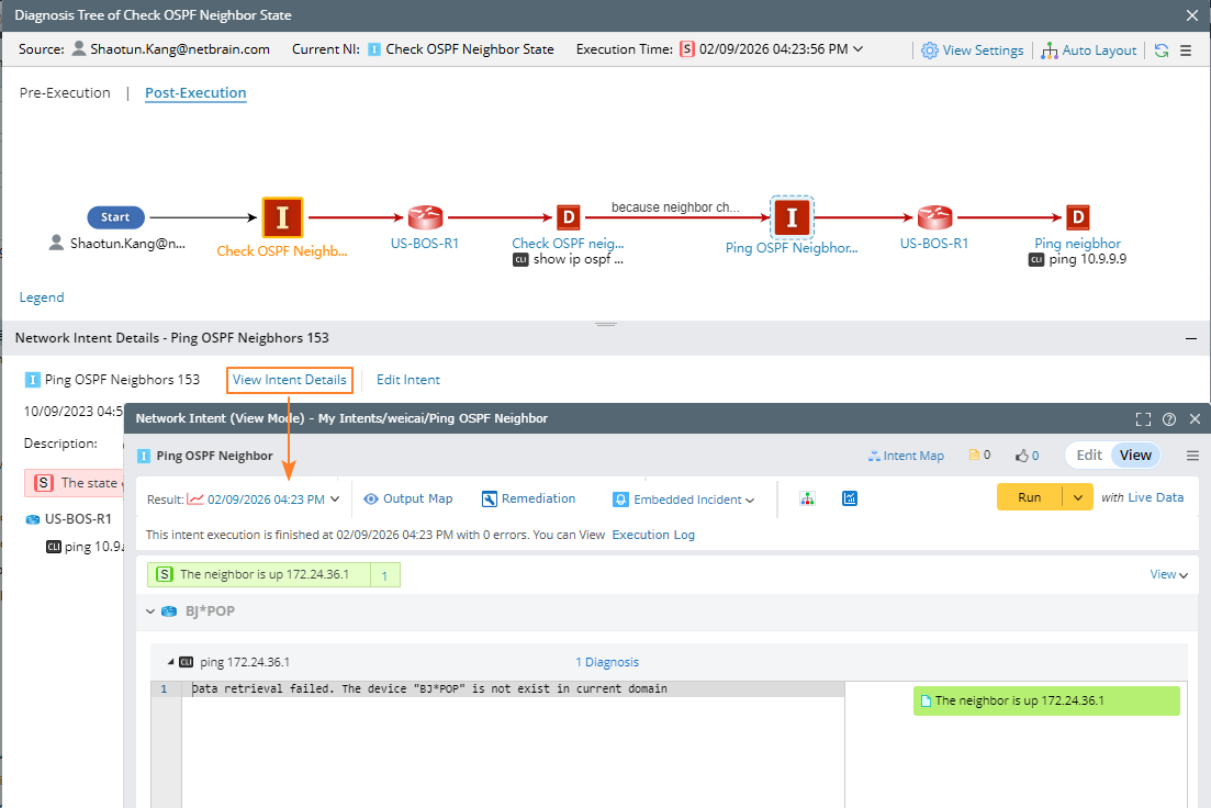 - Execute the intent, and check the result in the NI View Mode.