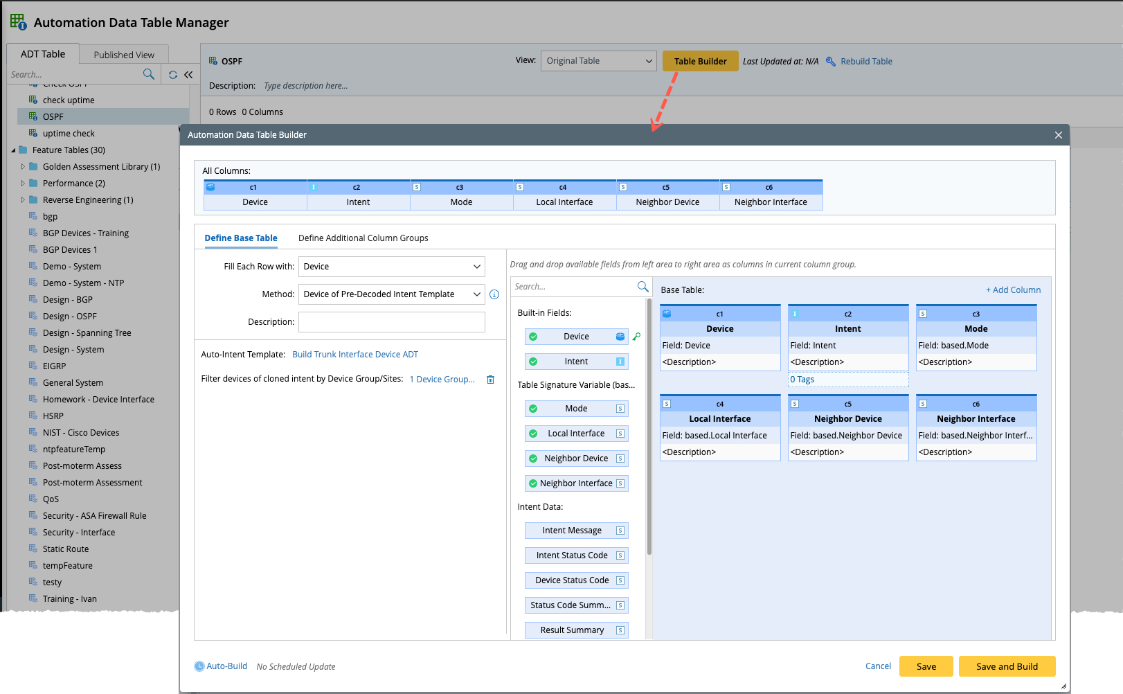 When multiple table columns are involved, a table in the format of an M*N (M is number of columns, N is number of rows) will be automatically generated based on the variable values. The replicated devices and replicated intents in this case are shared (public). -