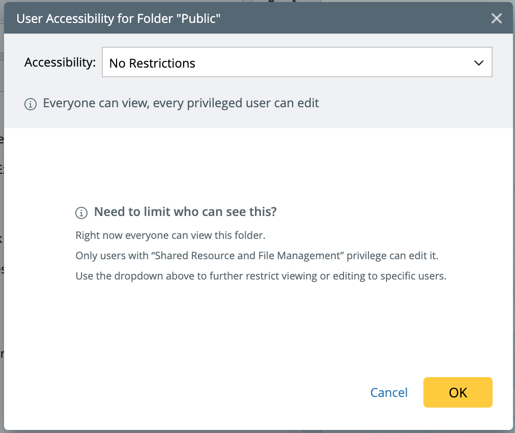 - No Restrictions: Everyone can view, and privileged users can edit.