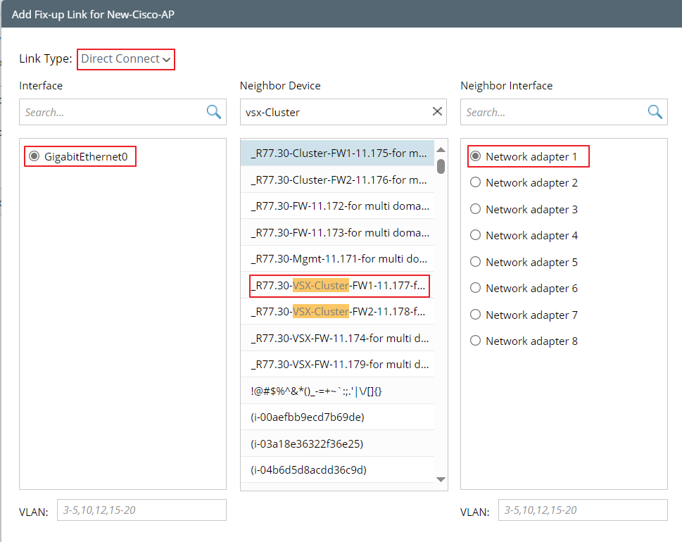 View and Add VLAN Fix-up Link for a specific device