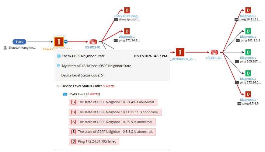 After an intent is executed, you can view its Diagnosis Tree (Post-Execution). Each execution result has its independent Diagnosis Tree (Post-Execution).