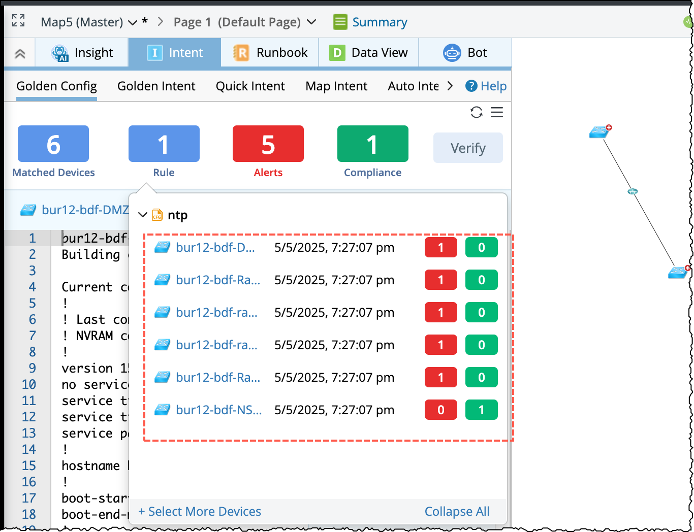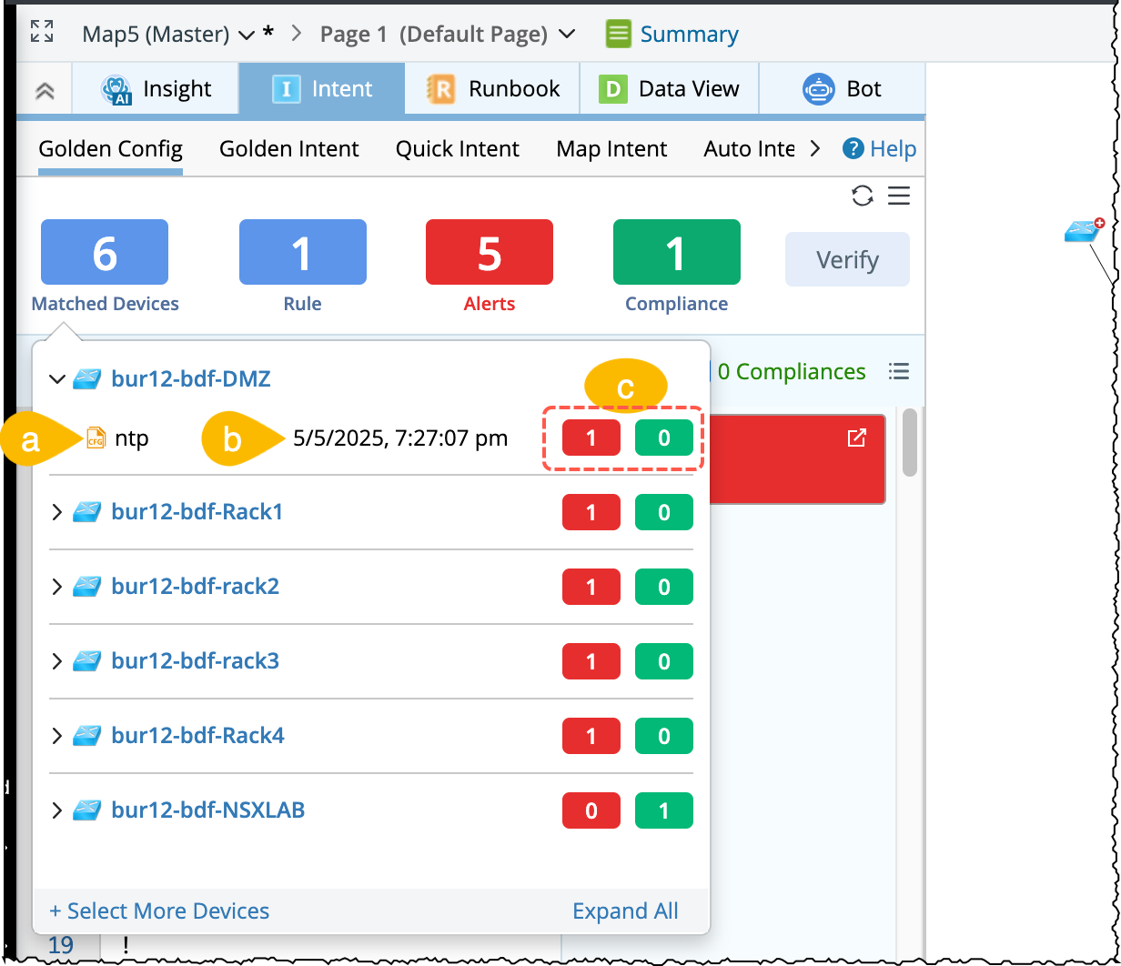 Matched Devices: It is the total number of map devices that match with the Golden Config Rules. In the tip window, the following information per device will be displayed: