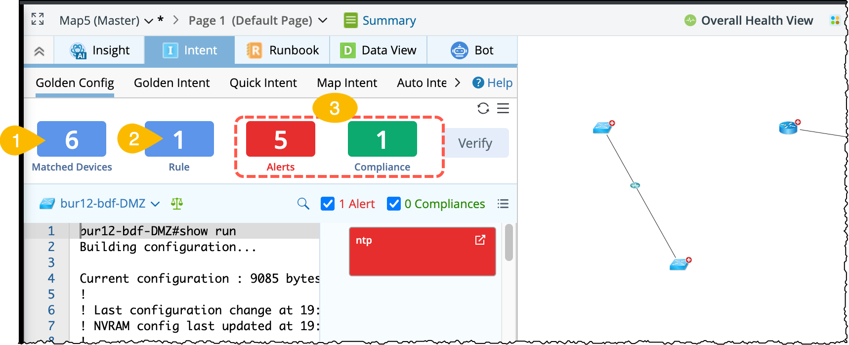 - The golden config rules in Golden Config pane on map can be verified only after manually verifying golden config rules in Golden Config.