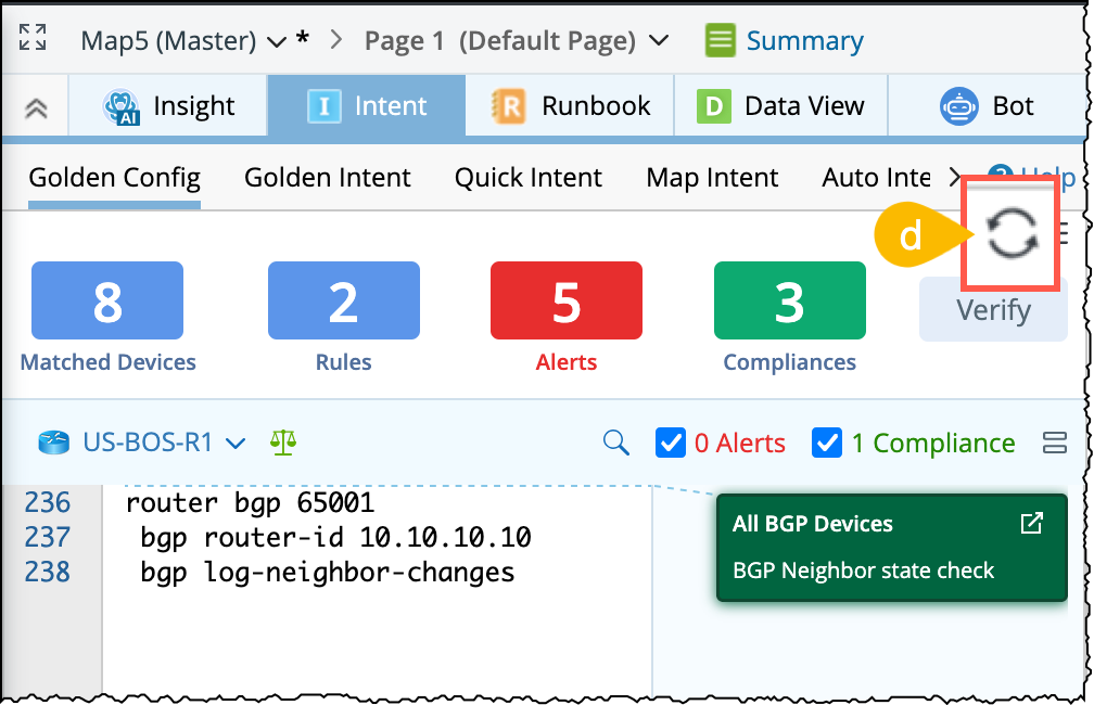 Refresh: To manually refresh the data in the Golden Config pane, click the refresh icon
