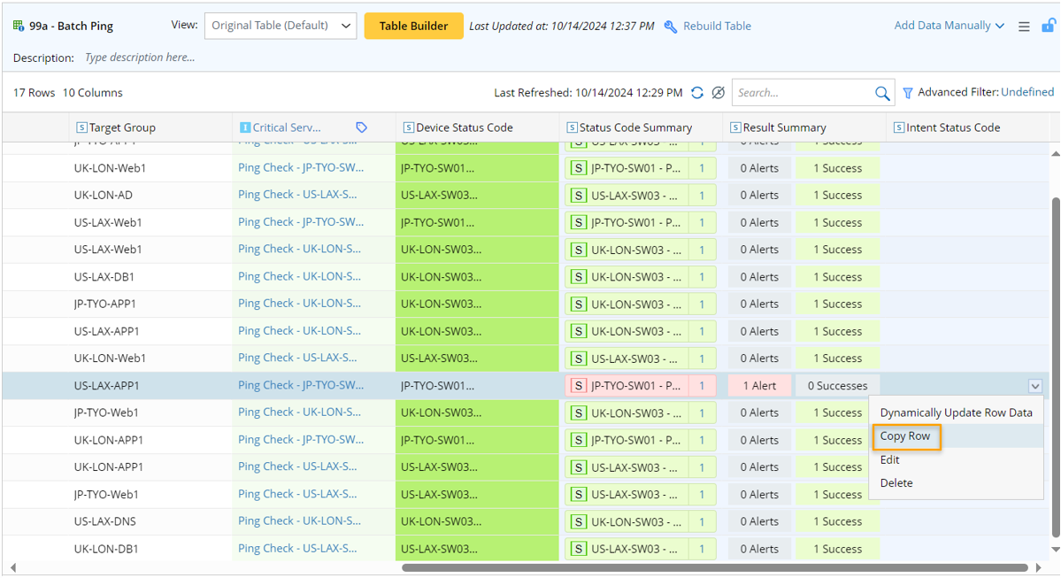 Note: The manually added rows will not be automatically updated. However, these rows can be manually edited or deleted. |