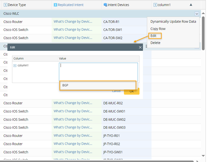 of a column (for example, the Intent Column), then set row data for the column. - Click OK after defining row data for this column.