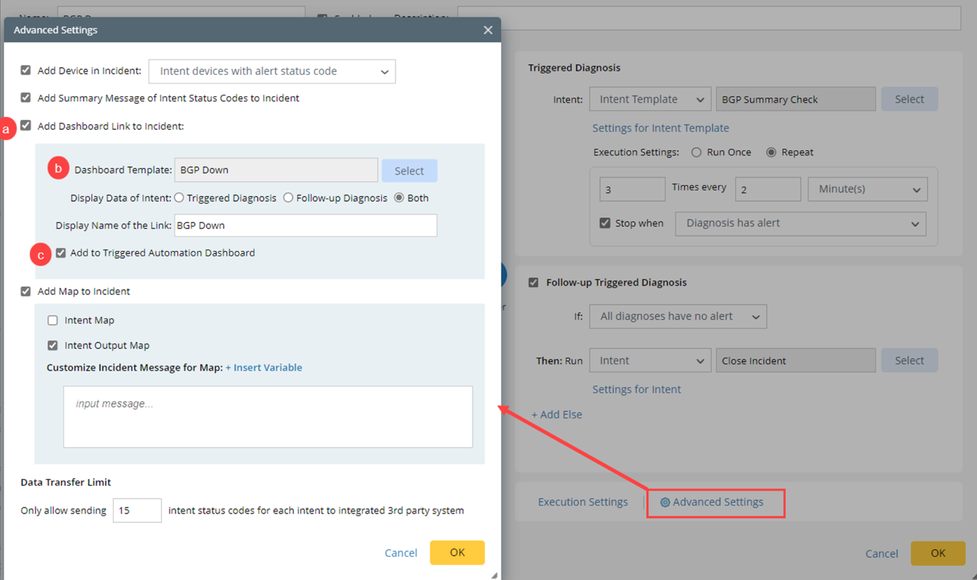 - In the Configure Triggered Automation window, click Advanced Settings.