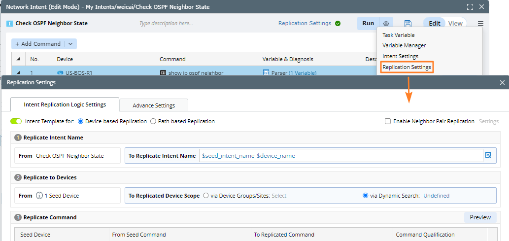 - Navigate to the Intent Replication Logic Settings tab to transform the current intent into an intent template.