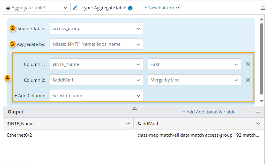 Aggregate Table is a pattern that can merge table rows of an output table by a column key and remove some columns from the parser output.