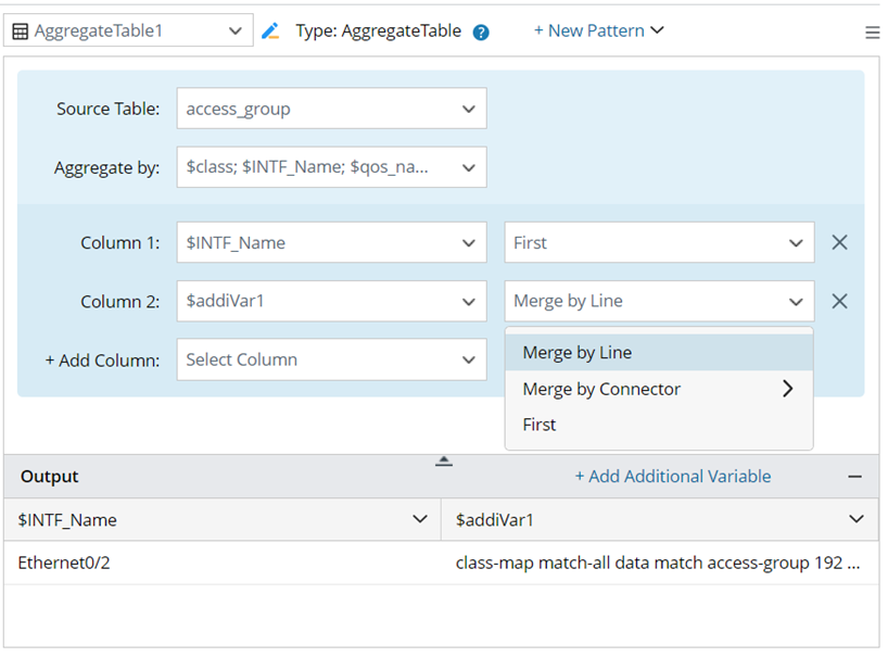 | Merge by Connector | The cell contents in these columns will be connected by a selected connector to be placed into one cell. if there is a redundant variable after merging the columns, the merged variable will lack location info (the line number in config line text). | |