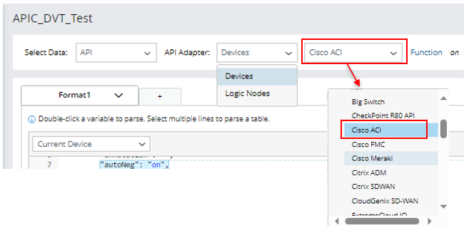 - In the API Adapter field, select Devices of Cisco ACI.