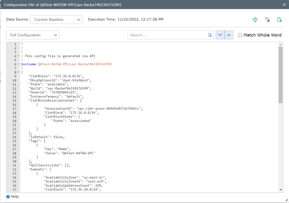 Right-click the device/node on the map, select View Configuration File to open the configuration file. The feature provides compare