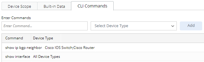 If some types of device data are not covered in the previous step, you can add CLI Commands in the CLI Commands tab to