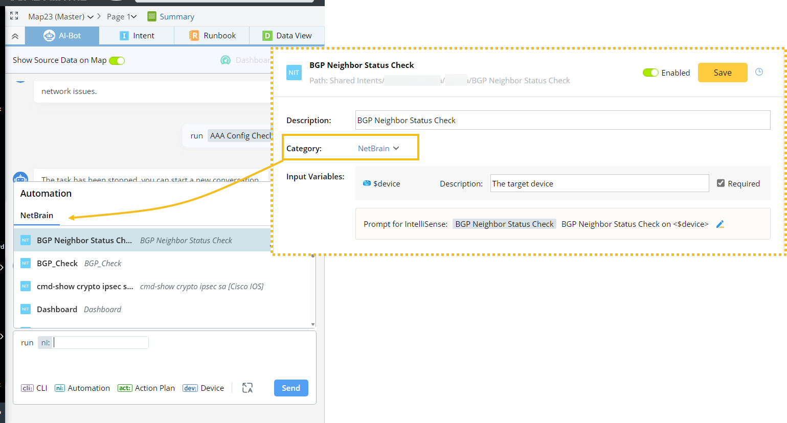 In the frontend conversational UI, you can switch to different categories to locate the automation more easily.