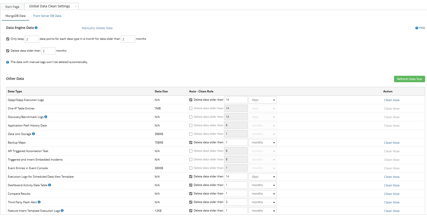 Tip: You can use the Clean Now button to clean the existing data immediately. |