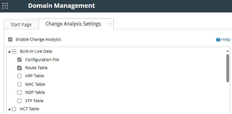 - Check the Enable Change Analysis check box to enable the Change Analysis. If not enabled, NetBrain will not monitor or record any data changes for Change Analysis Report.