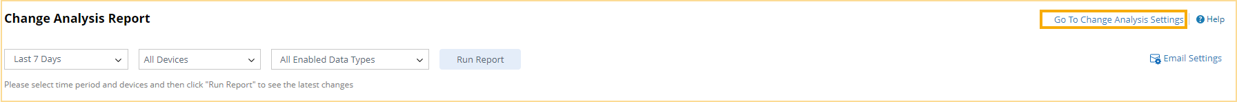 - On the Change Analysis Report page, click Go To Change Analysis Settings.