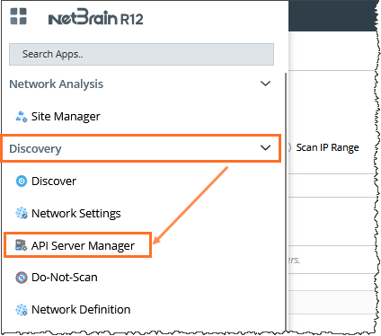 - On the Domain Management page, navigate to Discovery > API Server Manager.