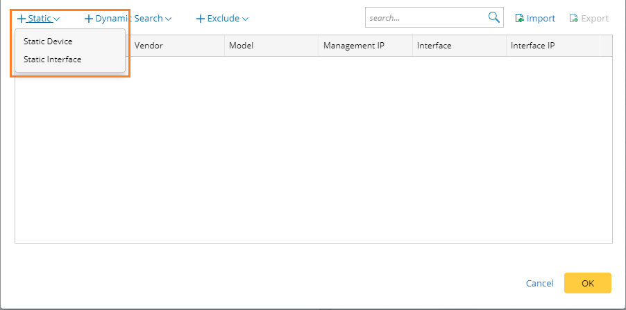 Click Exclude and select Exclude Device/Interface from the drop-down list.