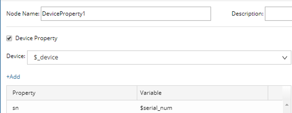 - Define the Device Property1 node as follows: