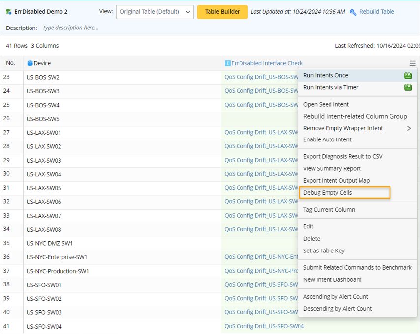 Note: The ‘Debug Empty Cells’ function is not supported if the intent column is created by the Intent Templates via Other ADT method. |