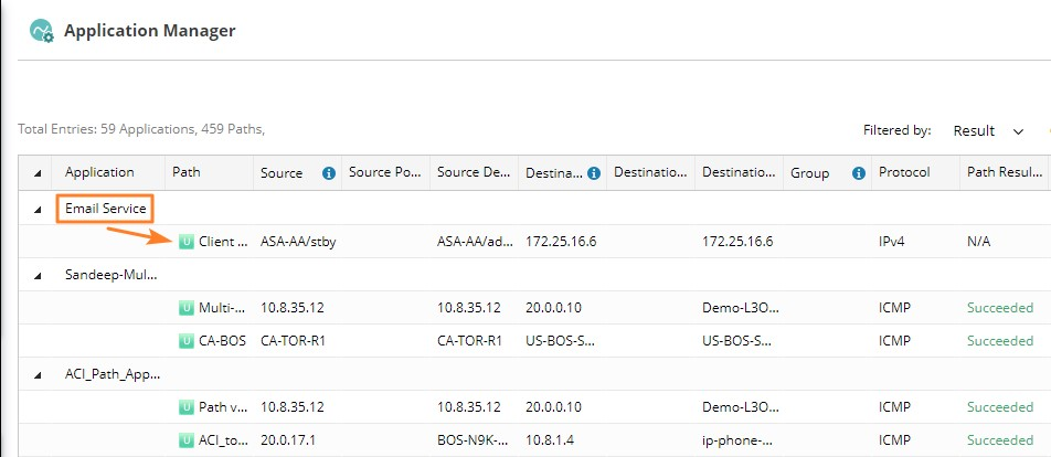 The Application Manager displays all the information about paths by default. To remove specific table headers, click the