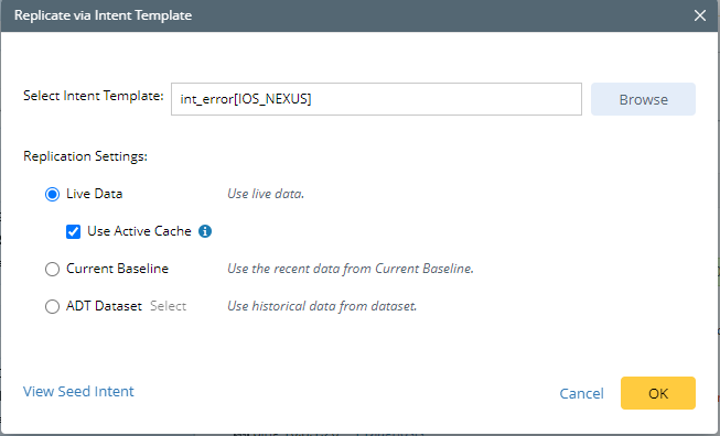 - (Optional) Click View Seed Intent to preview seed intent, which may help you select proper intent template. You can also define the replication settings if needed.