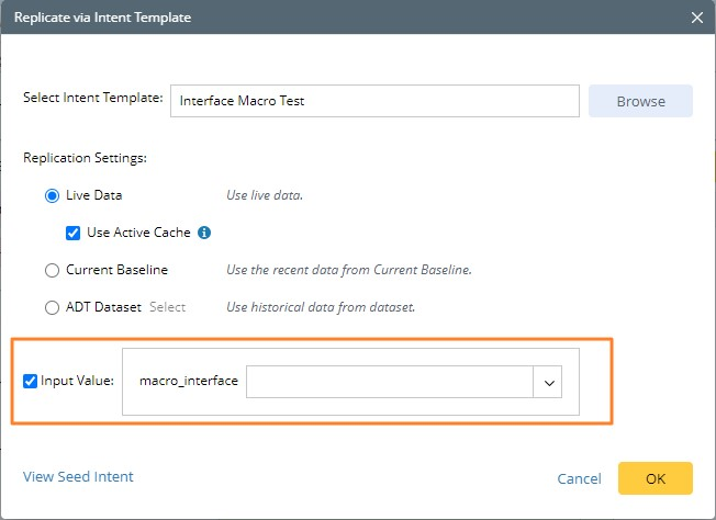 - Configure macro variables for replicating intent: enable Input Value, then input proper macro variable for the intent template.
