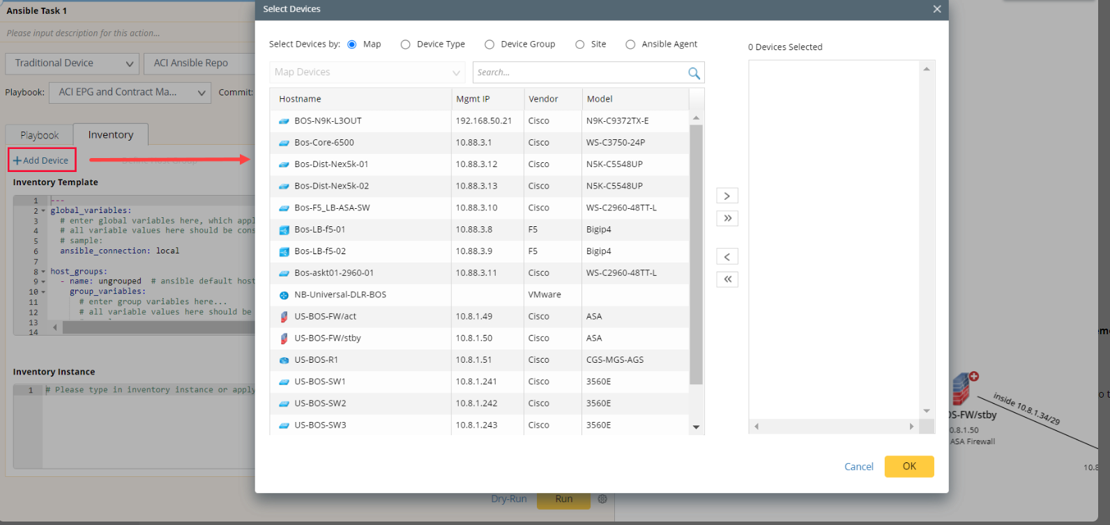- All traditional devices must be associated with a single Ansible Agent, which can be verified by viewing the devices’ Shared Device Setting and checking the devices’ front server. And then, you can go to Ansible Agent Manager to check if the front server is associated with a single Ansible Agent.